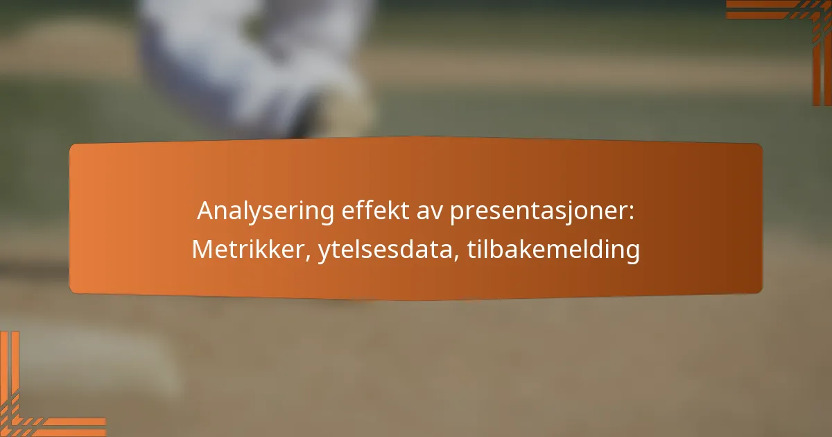 Å analysere effektiviteten av presentasjoner er avgjørende for å forstå publikumsengasjement og forbedre den totale ytelsen. Ved å utnytte nøkkelmetrikker som konverteringsrater og retensjonsrater, kan organisasjoner få verdifulle innsikter i hvor godt presentasjonene deres resonnerer. I tillegg kan bruk av ulike metoder for innsamling av ytelsesdata og beste praksiser for tilbakemelding betydelig forbedre kvaliteten og innvirkningen av fremtidige presentasjoner.