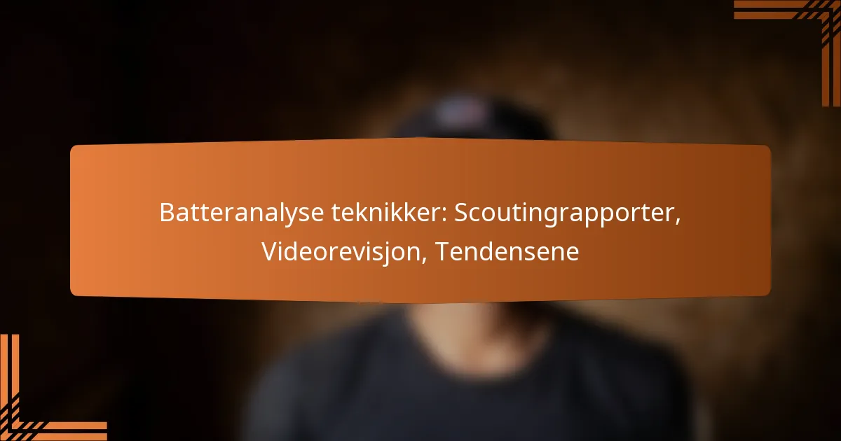 Batteranalyse teknikker inkluderer scoutingrapporter, videoanalyser og identifisering av tendenser. Disse metodene hjelper lag med å evaluere spillerprestasjoner og ta informerte beslutninger basert på datadrevne innsikter.